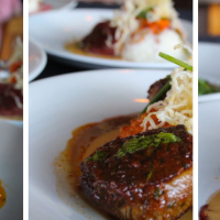 Asian Spiced Steak Tips Pan Seared Over A Miso Butter Emulsion With Chimichurri & A Sweet Soy Reduction