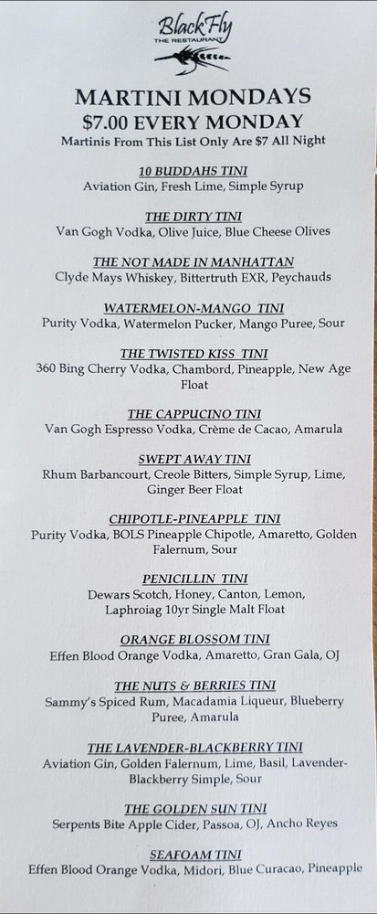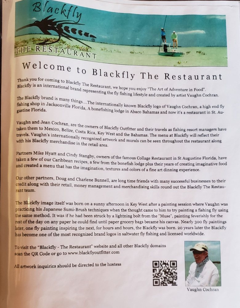 Introducing BlackFly, a vibrant restaurant in St. Augustine known for its delectable seafood, steaks, and pizzas. With a charming decor and artistic flair, BlackFly offers a relaxed yet upscale dining experience. Customers rave about the flavorful dishes, such as conch fritters, scallops, and unique pizzas. The menu also features vegan options and Happy Hour specials, making it a versatile choice for any occasion. The friendly staff and welcoming atmosphere add to the overall dining experience. Whether you're looking for a casual meal or a special celebration, BlackFly has something for everyone. Visit BlackFly at 108 Anastasia Blvd in St. Augustine to indulge in a culinary delight that will leave you wanting more.